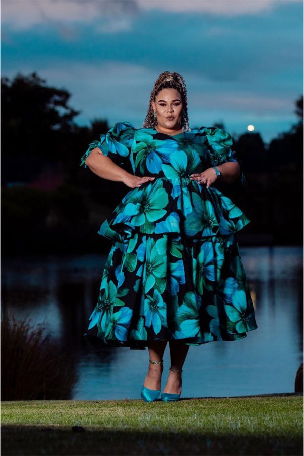 With this lovely tiered floral dress, you can embrace carefree elegance in a piece that works for every setting. The dress is adorned with a charming floral pattern that adds a whimsical and fresh touch to your wardrobe with its vivid blooms.